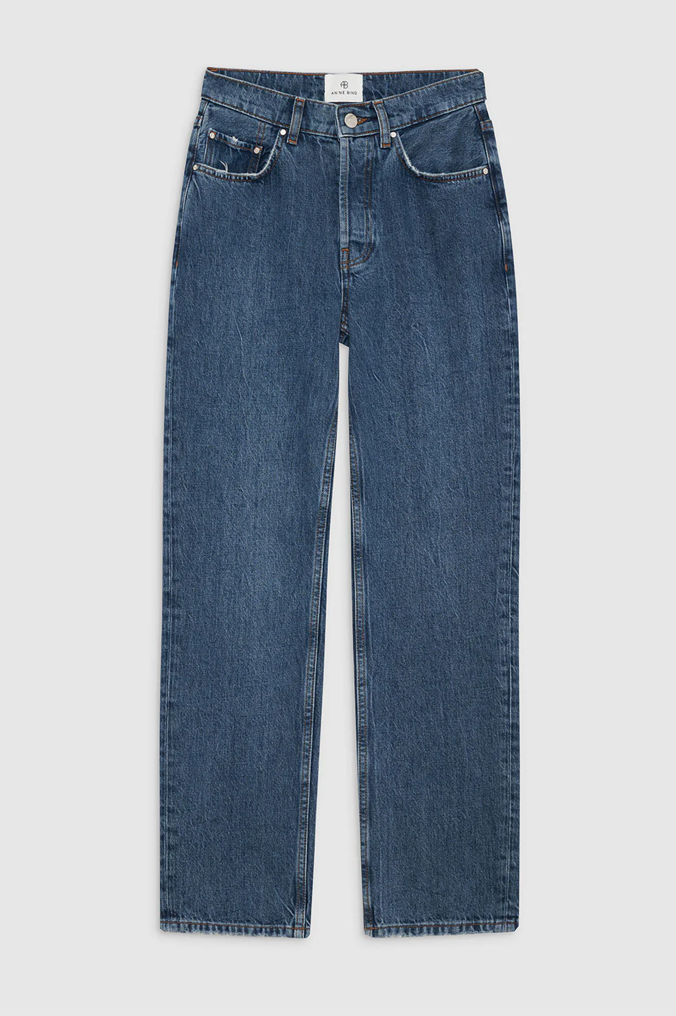 The Benson Jean is constructed from midweight rigid organic cotton denim without stretch in a dark, vintage blue wash.