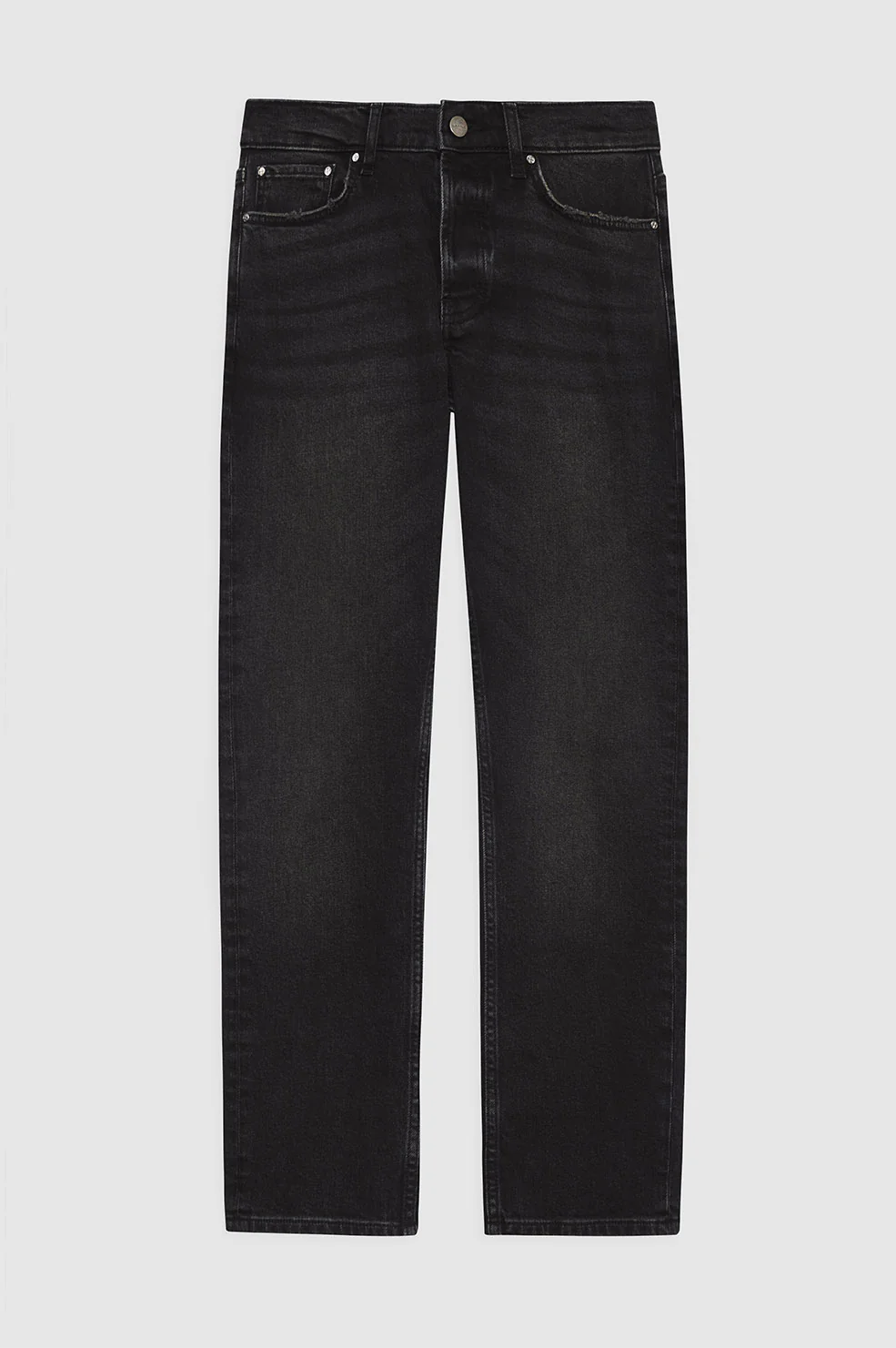 The Nix Jean is constructed from a midweight comfort-stretch denim in an iron black wash with vintage-inspired whiskering, abrasions, grinding at the pockets, and highs and lows throughout. Its relaxed skinny silhouette features a button-fly closure with gunmetal hardware and an ankle-length inseam.