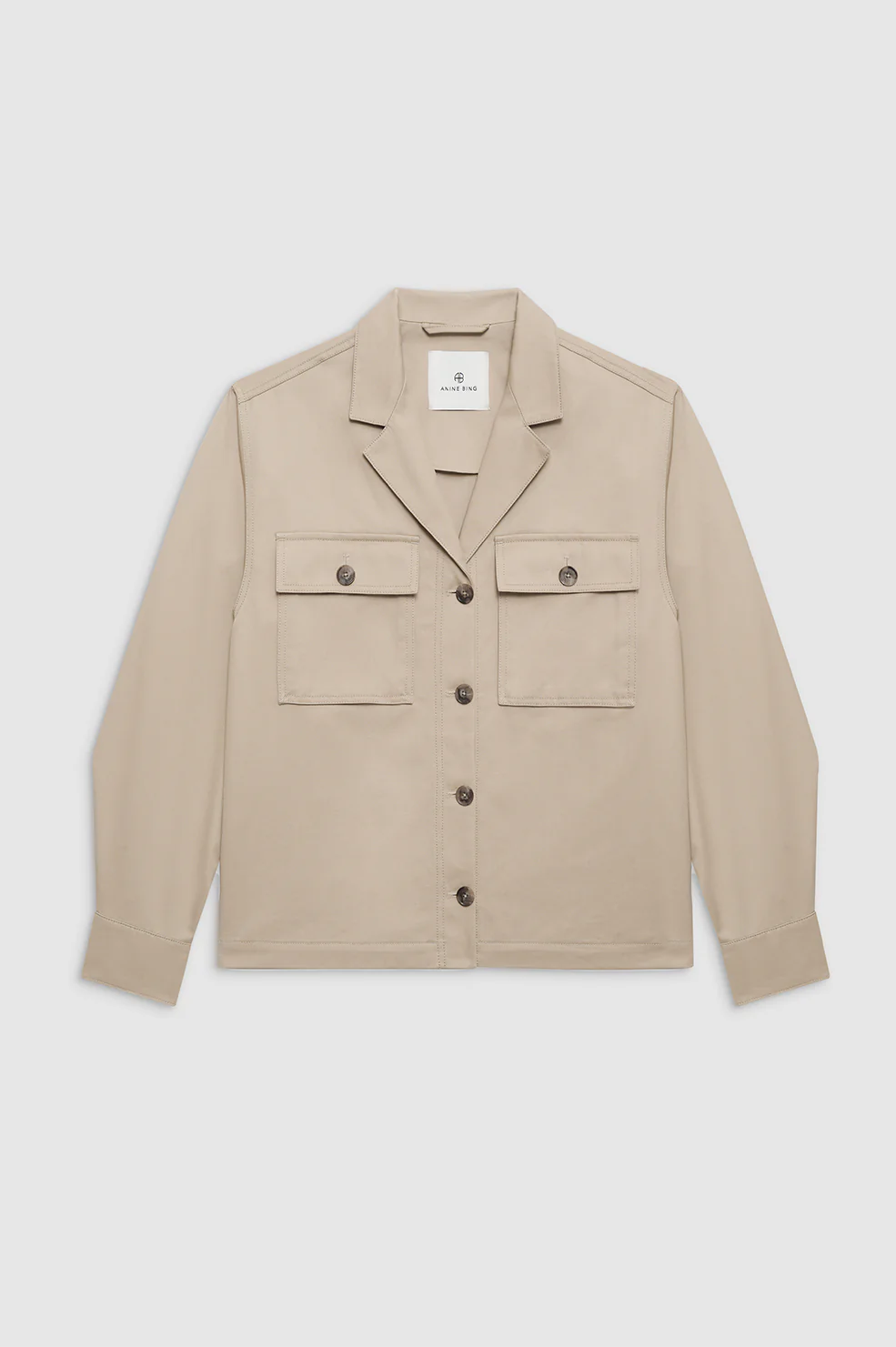 The Sawyer Shirt Jacket is constructed from a light-to-midweight 100% cotton-twill fabrication with a smooth hand and slight sheen. Its versatile shirt-jacket silhouette features a pointed collar, two utility patch pockets, button tab closures at the cuff, and back yoke.